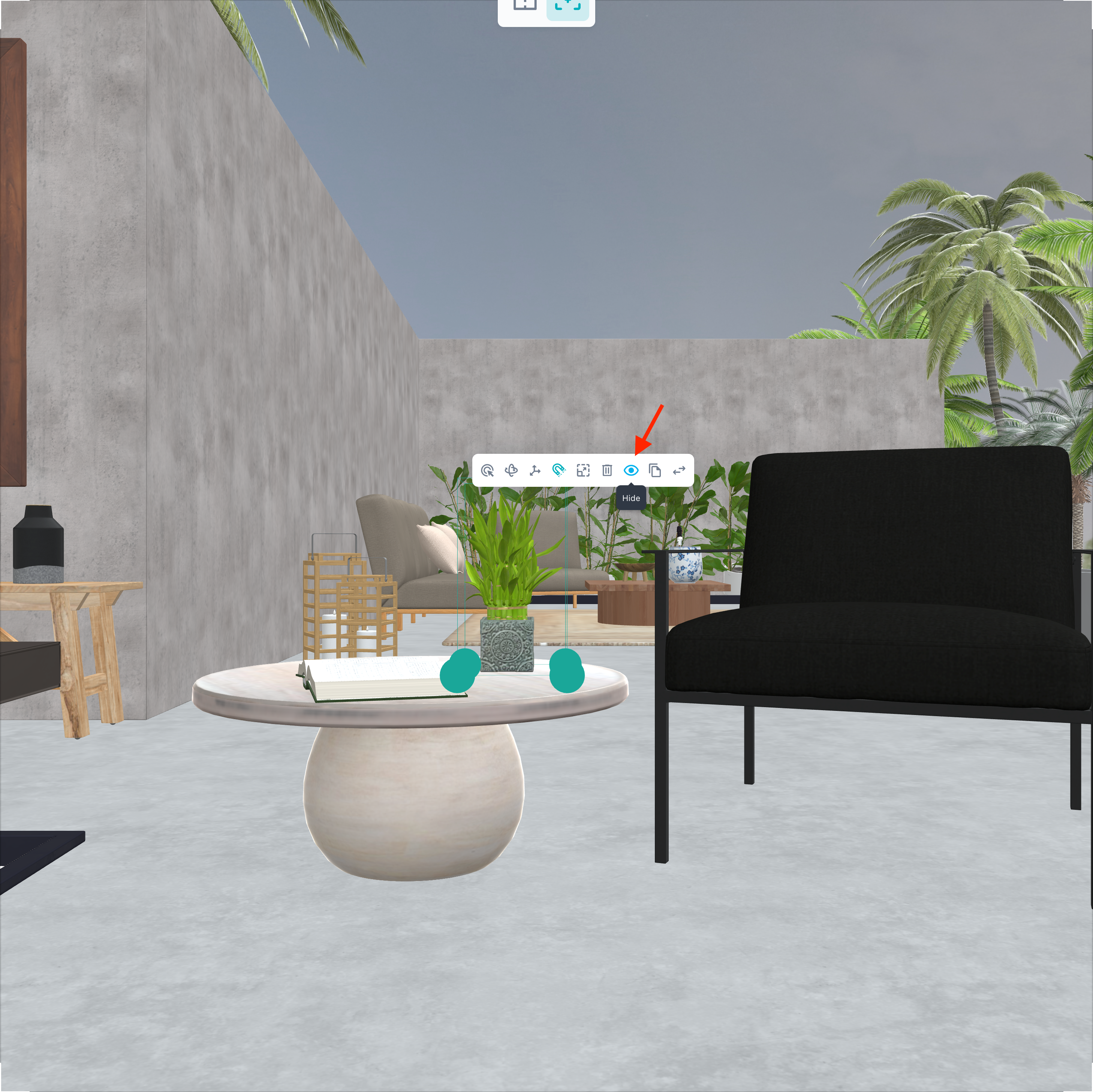 Temporarily hide props without deleting them! Toggle visibility with a single click in the side panel or toolbar.