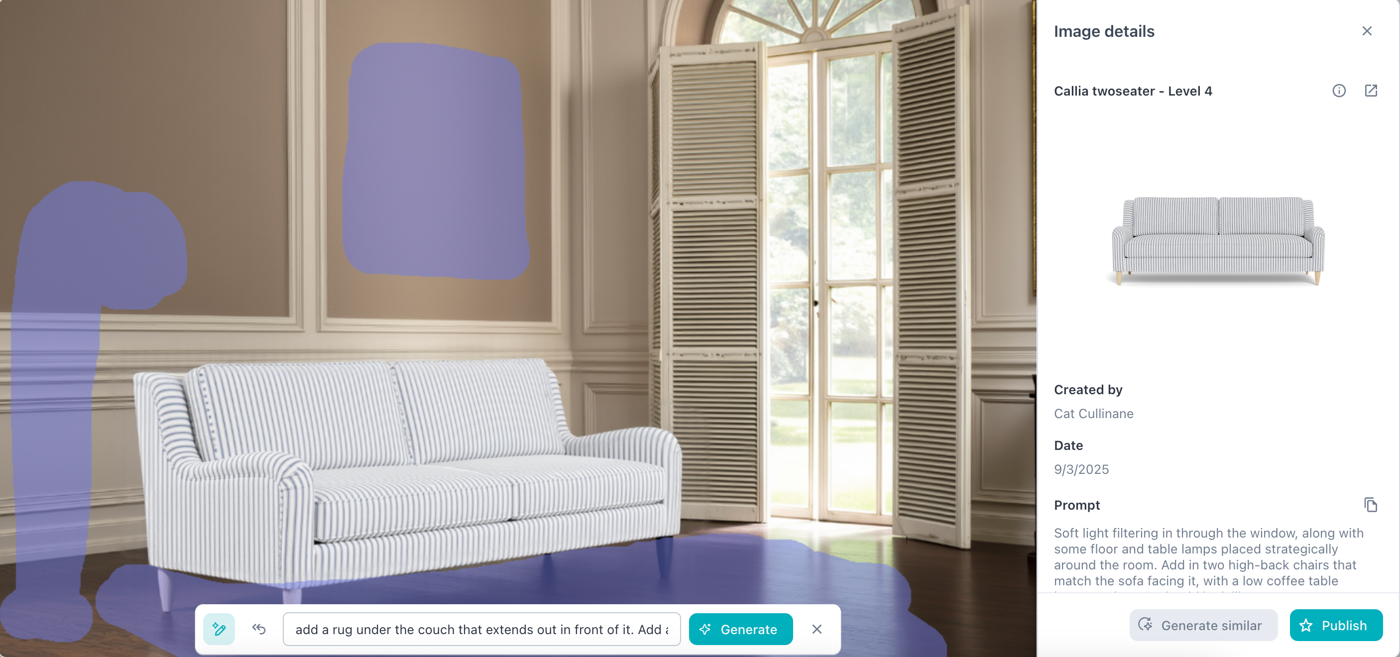 Edit on the fly to tweak details or fix product accuracy without a full regeneration.