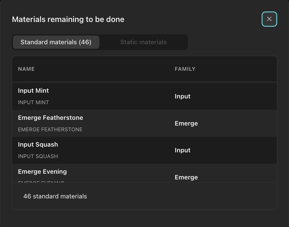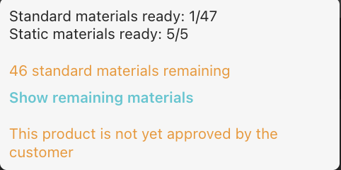Click "Show Remaining Materials" to see a dialog box with details about the pending materials.
