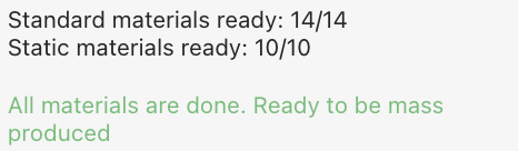 When all materials are ready, you’ll see a confirmation message, signaling that the item is production-ready.