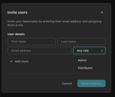 When inviting new users, Admins can now specify the user’s role as Distributor at the time of invitation.