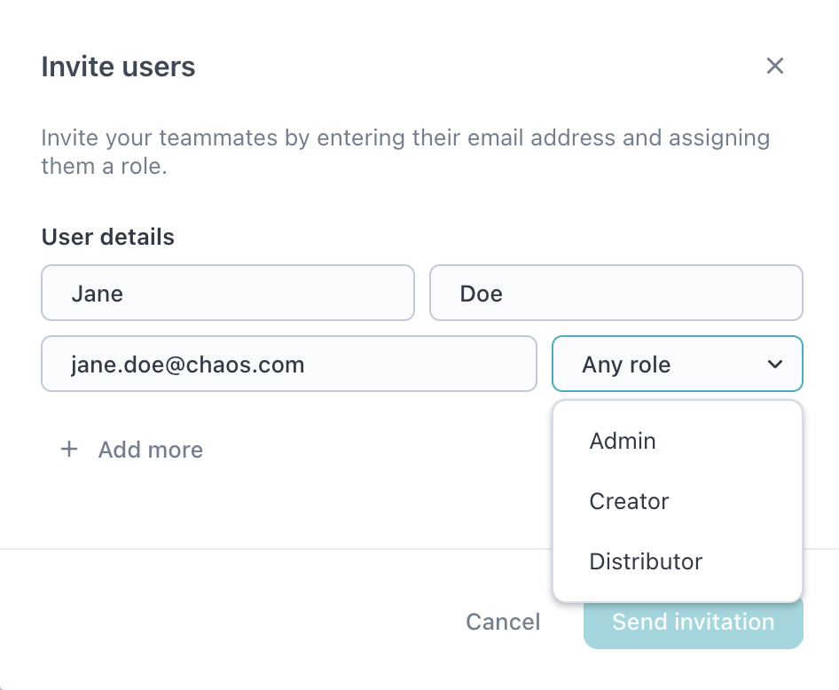 When inviting new users, Admins can specify the user’s role at the time of invitation: