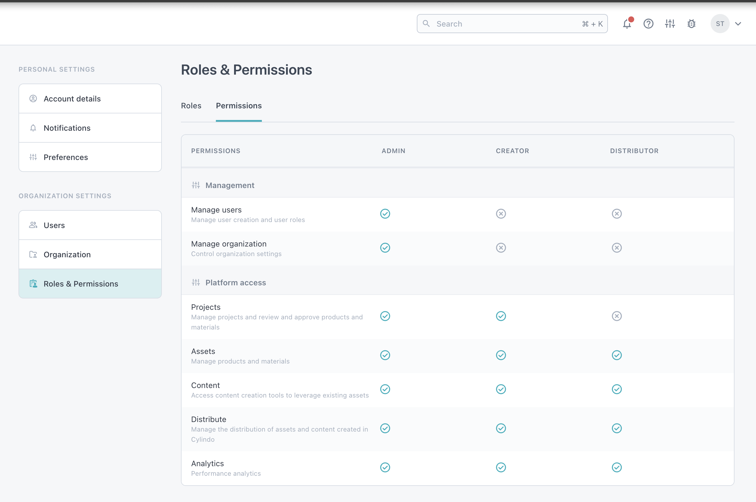 The Distributor Role is the first role-based permission feature for Cylindo users, allowing you to limit access to asset creation workflows.